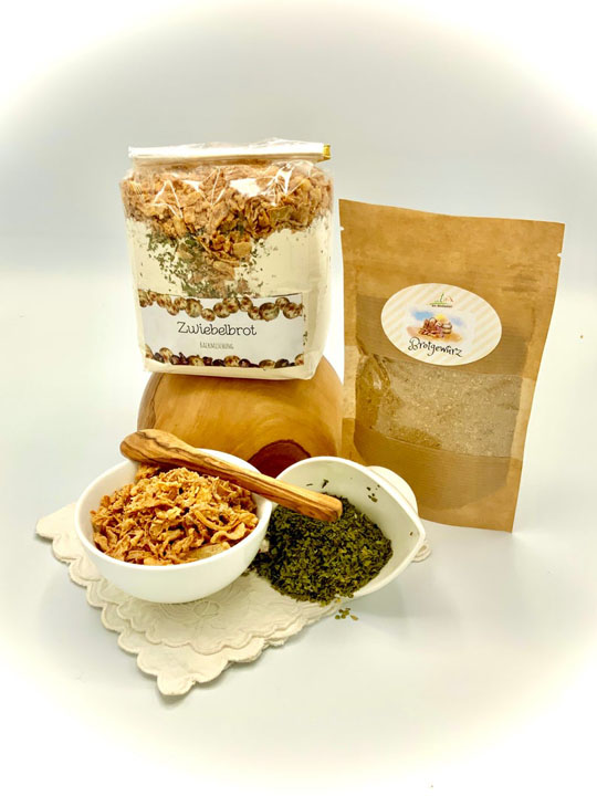 Zutaten: Mehl, Röstzwiebeln, Salz, Petersilie, Hefe