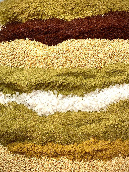 Zutaten: Thymian, geröstete Sesam, Sumac, Oregano, Salz, Majoran, Cumin, Meeressalz